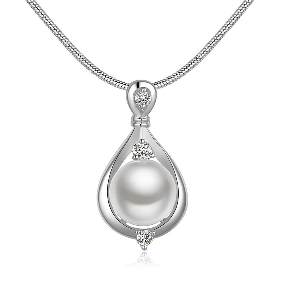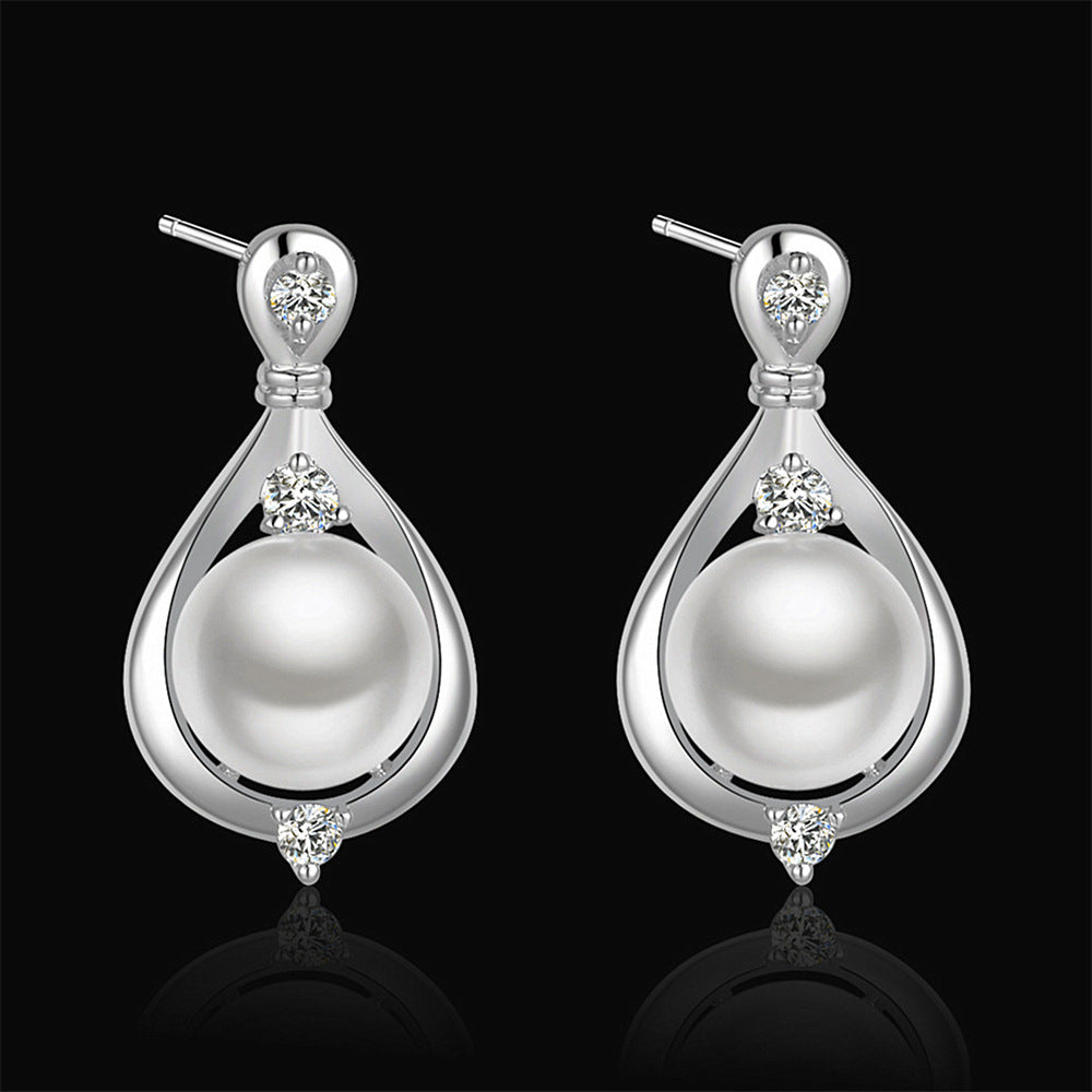 Fashion Lady Water Drop Silver Pearl Jewelry Set