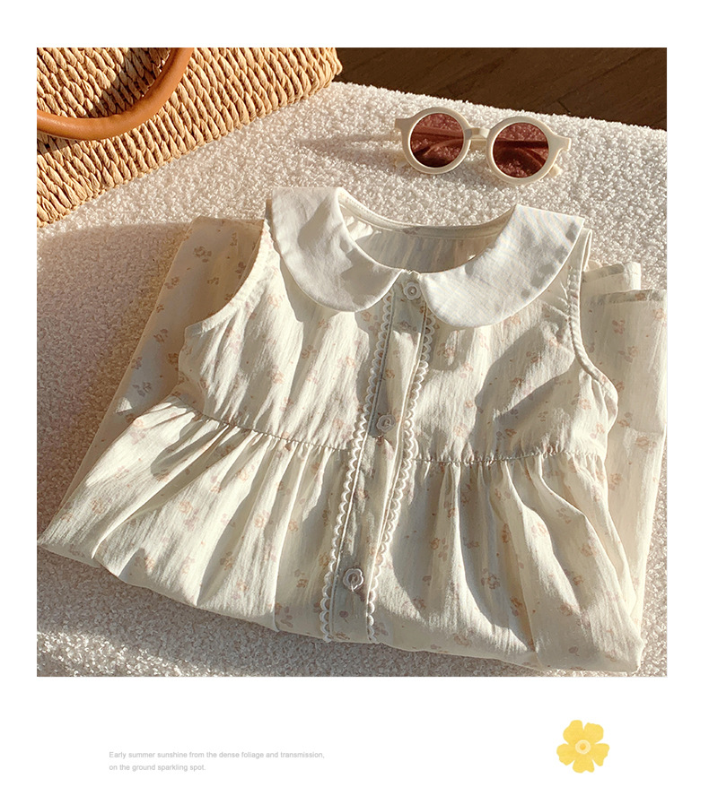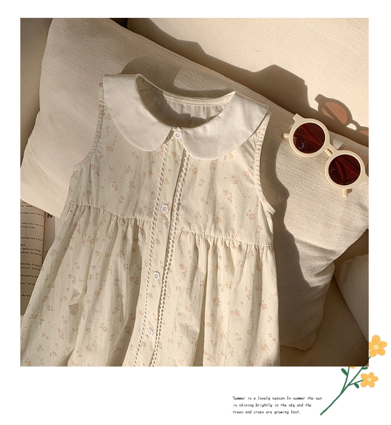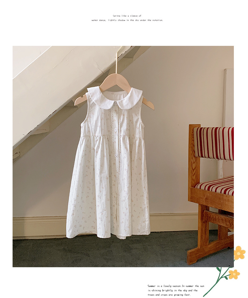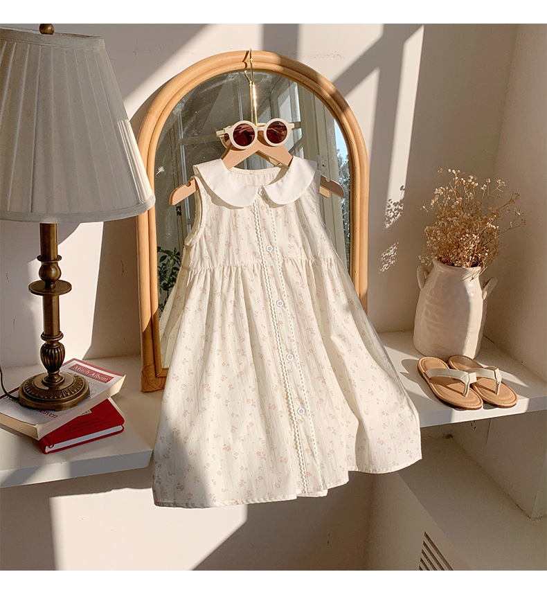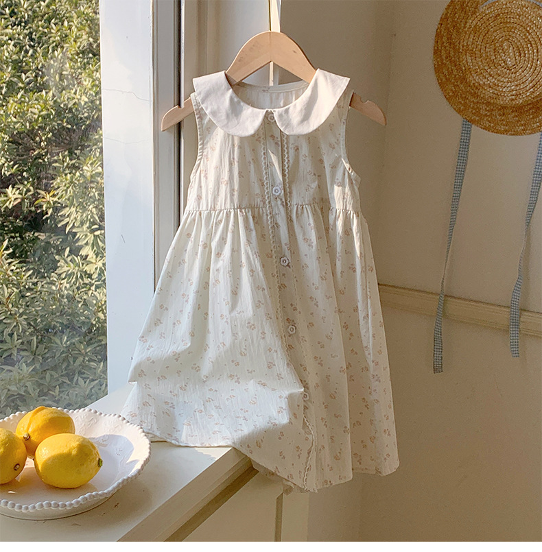 Girls' French Floral Doll Collar Dress