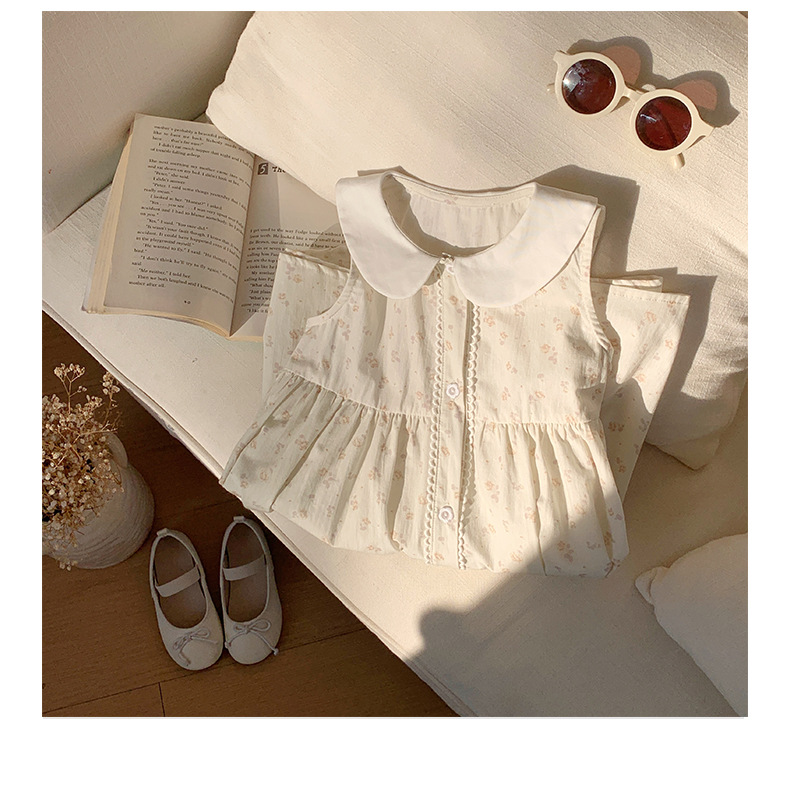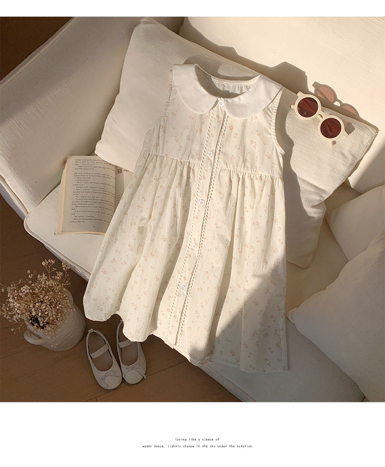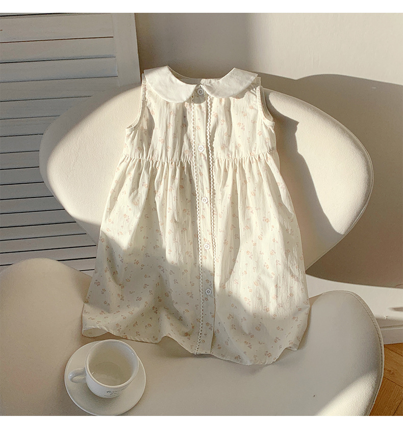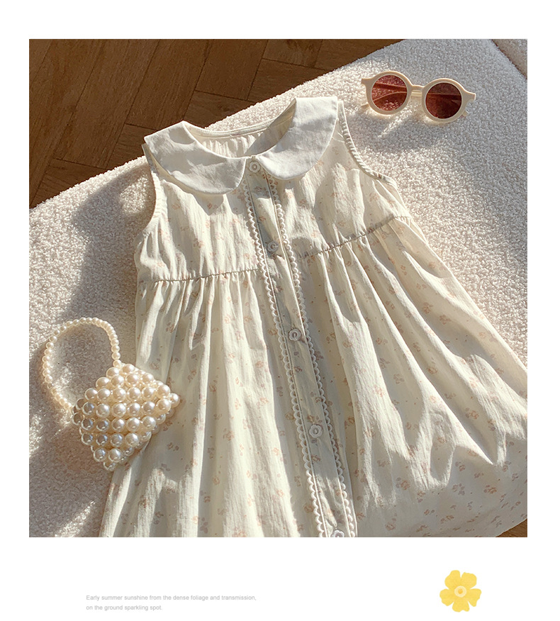 Girls' French Floral Doll Collar Dress