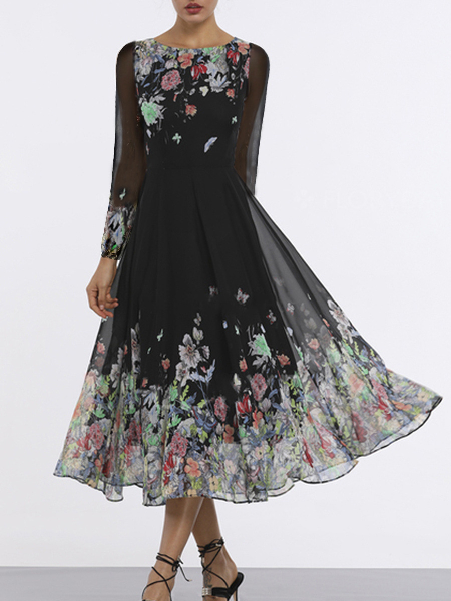 New Women's Clothing Dress Sexy Cutout Slim-fit Long-sleeved Large Swing Skirt
