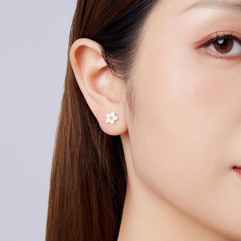 S925 Sterling Silver Cherry White Fritillary Stud Earrings