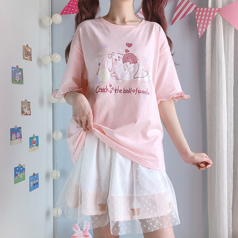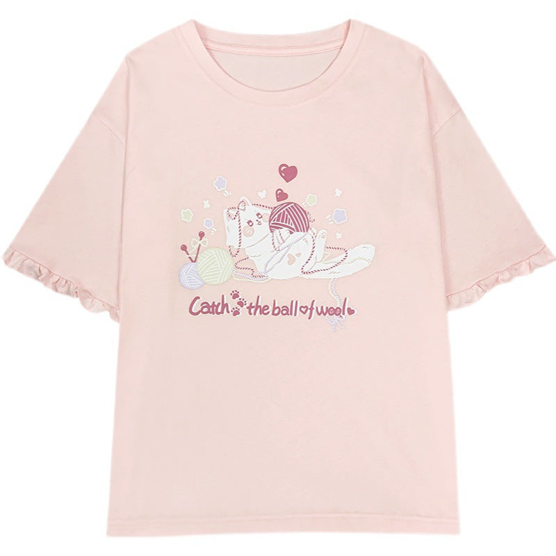 Short-sleeved Female Rabbit Cartoon Print Girl T-shirt Female Student Loose Wild Top