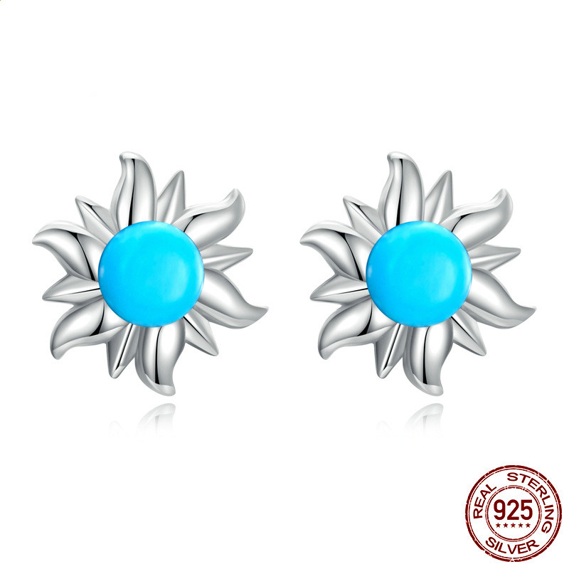 Turquoise Cross Stud Earrings Ring Jewelry Set